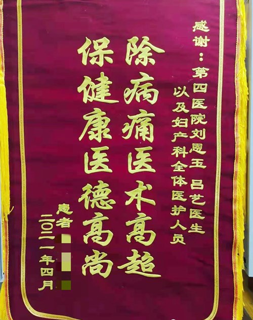哈爾濱市第四醫(yī)院婦產(chǎn)科收到致謝錦旗