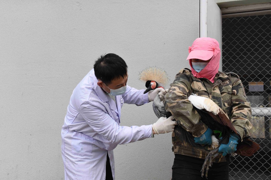 春季是鳥類重點防護時期,近日,動物園動物醫(yī)生全員出動,為園內1000多只鳥進行疫苗接種。檢查腳環(huán),登記年齡、性別、體重、體況,檢查抗體、接種疫苗,一個鳥兒不能少。