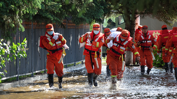 18日凌晨,記者在位于塔河鎮(zhèn)中央大街東端的塔河農(nóng)商銀行機(jī)關(guān)辦公樓前看到,漲勢很快的洪水正迅猛地漫過中央大街,向街邊的農(nóng)商銀行機(jī)關(guān)大樓、稅務(wù)局辦公樓和電視臺辦公樓等處涌來,而這幾個沿街單位地勢較低,很容易受到洪水的侵襲。為盡量控制洪水水勢,最大限度減少洪水造成的損失,塔河縣防指迅速調(diào)集人力物力,主要領(lǐng)導(dǎo)靠前指揮,廣大救援官兵奮勇爭先,在幾個臨街單位外圍用沙袋圍壩攔堵,并調(diào)動多臺高壓水泵抽水抗?jié)?,給幾個單位的救援提供了極大地助力,也為其自救創(chuàng)造了更多的時(shí)機(jī)。