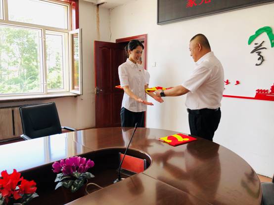 在蒙克山分會場,黨總支書記為各支部書記授予黨旗,一名黨員就是一面旗幟,一個支部就是一座堡壘,一面面鮮紅的黨旗,是一份沉甸甸的責任與使命。