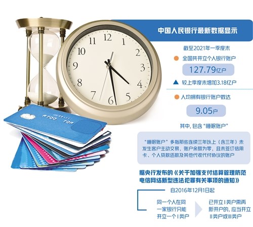 中國(guó)人民銀行最新數(shù)據(jù)顯示,截至2021年一季度末,全國(guó)共開(kāi)立個(gè)人銀行賬戶127.79億戶,較上季度末增加3.18億戶,人均擁有銀行賬戶數(shù)達(dá)9.05戶。