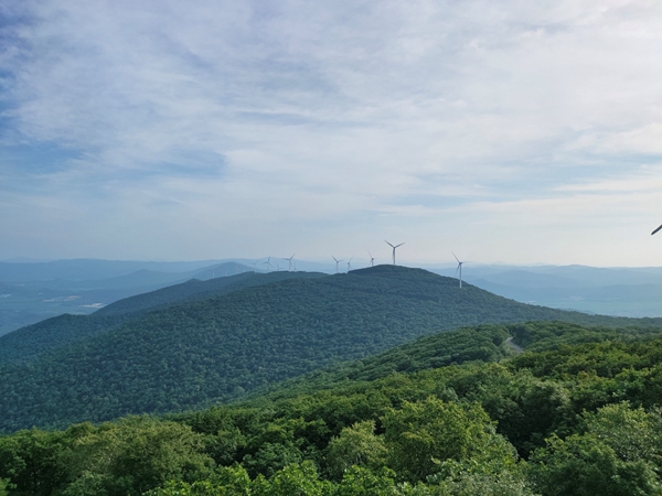佇立在饒河縣大頂子山景區(qū)的風力發(fā)電機