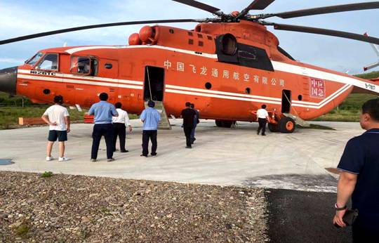 由于雷雨天氣過后,山中林地道路難行,電力部門巡線搶修人員很難快速發(fā)現(xiàn)故障。為確??焖偬幹?,確保及時輸送電,呼中區(qū)人民政府請示大興安嶺地區(qū)應(yīng)急管理局,申請駐防在呼中區(qū)內(nèi)的M-26直升飛機巡航,全力查找線路故障。在得到批準后,巡航半小時內(nèi),快速發(fā)現(xiàn)呼碧線128號電線桿和129號電線桿之間一處線路故障,為電力部門提供了準確的定位信息。