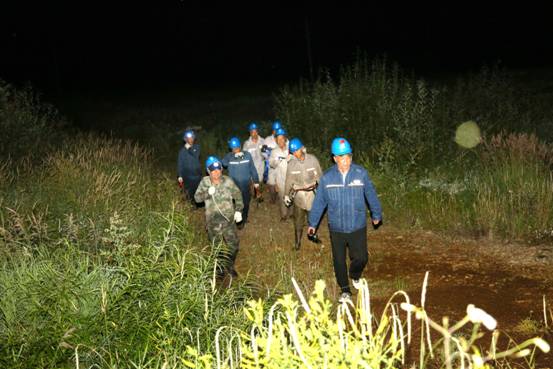 呼中輸電運檢班組班長修春陽帶著班組走到公路時已近深夜,修春陽介紹說:“接到報損坐標后,我們班組迅速到達坐標最近公路處,當時已是19時許,進山時帶著幾塊月餅和水,天還亮著走了1個多小時,回來時天已經(jīng)黑透了,路上有密林、塔頭墩和近腰深的水路,走了2個多小時?!?/span>