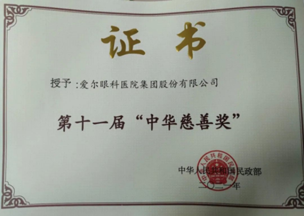9月5日,是我國(guó)第6個(gè)“中華慈善日”。中國(guó)慈善領(lǐng)域政府榮譽(yù)獎(jiǎng)項(xiàng)——第十一屆“中華慈善獎(jiǎng)”評(píng)選表彰大會(huì)(視頻會(huì)議)在北京舉行,隆重表彰慈善領(lǐng)域?yàn)槊撠毠?jiān)和抗擊新冠肺炎疫情等作出貢獻(xiàn)的單位、個(gè)人、慈善項(xiàng)目等。愛(ài)爾眼科醫(yī)院集團(tuán)榮膺第十一屆“中華慈善獎(jiǎng)”捐贈(zèng)企業(yè)。這也是繼2018年榮獲第十屆“中華慈善獎(jiǎng)”后,愛(ài)爾再度獲此殊榮。