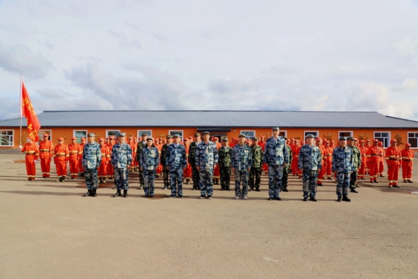圖為阿木爾林業(yè)局黨政領(lǐng)導(dǎo)與“森防鐵軍”表達(dá)共同心聲——保生態(tài)平安,護(hù)綠水青山