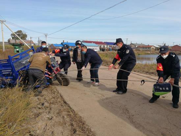 巴彥縣出現(xiàn)疫情后,哈爾濱市公安局航運(yùn)分局副局長井立軍帶領(lǐng)41名來自航運(yùn)分局、地鐵分局、禁毒支隊(duì)的戰(zhàn)友們,在巴彥農(nóng)村疫情災(zāi)區(qū)走鄉(xiāng)鎮(zhèn)進(jìn)村屯、查卡點(diǎn)看秋收,用頑強(qiáng)的意志、過硬的膽識(shí),漂亮地打贏了一場巴彥農(nóng)村疫情防控阻擊戰(zhàn)。截至目前,哈爾濱市公安局駐巴彥農(nóng)村防疫工作組共協(xié)助維護(hù)核酸檢測點(diǎn)秩序3028處、檢查村屯卡點(diǎn)2015處、整改存在管理問題村屯卡點(diǎn)103處、整改存在安全隱患居家隔離點(diǎn)437戶,勸阻私自出門秋收等人員862人,監(jiān)督處置有害垃圾、病死牲畜等事件33起,為全面阻斷巴彥農(nóng)村疫情蔓延奠定了堅(jiān)實(shí)基礎(chǔ)。