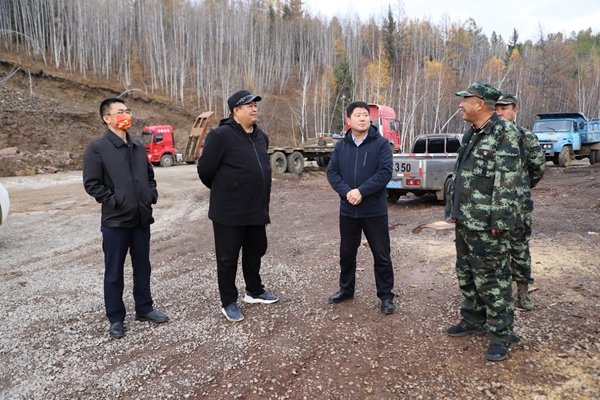 圖為阿木爾林業(yè)局黨委副書(shū)記、局長(zhǎng)韓鳳泉(右二)深入到2—1線檢查新開(kāi)通路線施工進(jìn)展情況(王力/攝)
