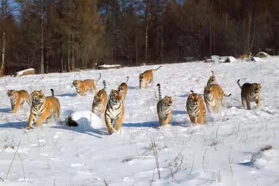 令人震撼的鏡泊湖吊水樓的冰瀑是牡丹江冬季的重要景點之一。在冰凌交錯、銀裝素裹的純凈世界里,世界吉尼斯紀錄創(chuàng)造者——中國懸崖跳水奇人狄煥然,在零下二十多度的鏡泊湖吊水樓冰瀑上,伸展雙臂,凌空一躍,撲向不結(jié)冰的黑龍?zhí)端?,跳入落差?0米的水中,成為鏡泊湖景區(qū)冬季的一道獨特景觀。鏡泊湖水系水質(zhì)較好,水產(chǎn)資源極為豐富,大約有六十多種魚,冬季體驗鏡泊湖的大網(wǎng)捕魚、小網(wǎng)掛魚,在每年辭舊迎新之際看一場冬捕,絕對是預(yù)示著年年有余好兆頭的絕佳體驗。在漁夫們高亢的號子聲中,800多米長的大網(wǎng)從冰洞中漸漸滑出,胖頭魚、鯽魚、鯉魚等翻滾著、跳躍著,冒著熱氣蹦到冰面,“萬尾鮮魚出玉門”的奇觀景象讓人感嘆不已。橫道東北虎林園是世界上最大的東北虎人工飼養(yǎng)繁育基地和野化訓練基地。在幾代養(yǎng)虎人的辛勤努力下,已繁育活體東北虎1100余只,建有猛虎園、靈長類館、幼虎生態(tài)館、高空玻璃棧道、珍稀動物觀賞園、科普展覽館、觀虎長廊、虎文化廣場等多個景點。在這里,可以感受到獸中之王奔跑在蒼茫林海雪原的風馳電掣。也可以感受到成群東北虎躺臥在皚皚白雪“互談心事”的百般愜意,還可以領(lǐng)略到虎牛相斗、群虎撲食的驚險刺激。