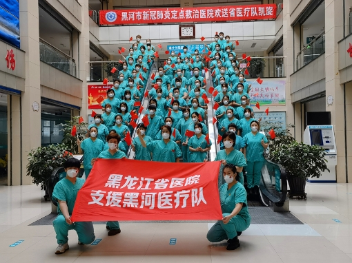 醫(yī)療隊(duì)抵達(dá)黑河后即迅速成立了臨時(shí)黨支部,由總指揮商曉英副院長(zhǎng)擔(dān)任支部書(shū)記,充分發(fā)揮基礎(chǔ)黨組織戰(zhàn)斗堡壘作用,堅(jiān)守初心、踐行使命,加強(qiáng)抗疫一線黨的建設(shè),團(tuán)結(jié)帶領(lǐng)了所有黨員及全體群眾,對(duì)黨忠誠(chéng)、勇于擔(dān)當(dāng)、頑強(qiáng)堅(jiān)守。期間,得到了省衛(wèi)健委、黑河市委市政府、黑河抗疫指揮部等各級(jí)領(lǐng)導(dǎo)的關(guān)懷、認(rèn)可和鼓勵(lì),也得到了國(guó)家、省級(jí)專家組的科學(xué)指導(dǎo)和一致好評(píng)。醫(yī)療隊(duì)精湛的救治水平、無(wú)微不至的服務(wù)關(guān)懷更是得到了每一位患者的點(diǎn)贊。