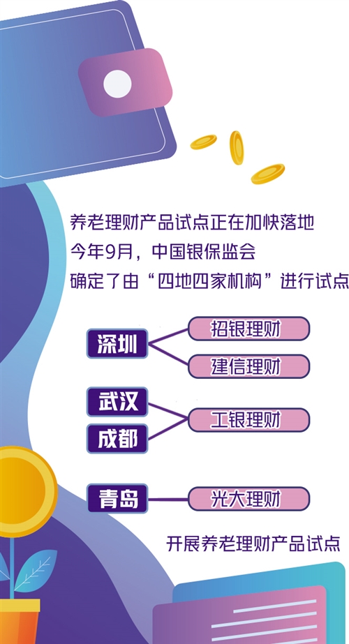 養(yǎng)老理財(cái)產(chǎn)品試點(diǎn)正在加快落地。今年9月,中國(guó)銀保監(jiān)會(huì)確定了由“四地四家機(jī)構(gòu)”進(jìn)行試點(diǎn),即工銀理財(cái)在武漢和成都、建信理財(cái)和招銀理財(cái)在深圳、光大理財(cái)在青島開(kāi)展養(yǎng)老理財(cái)產(chǎn)品試點(diǎn)。10月下旬,銀保監(jiān)會(huì)首席檢查官、辦公廳主任、新聞發(fā)言人王朝弟在國(guó)新辦發(fā)布會(huì)上透露,養(yǎng)老理財(cái)試點(diǎn)產(chǎn)品已進(jìn)入報(bào)備階段,很快就會(huì)跟廣大消費(fèi)者見(jiàn)面。