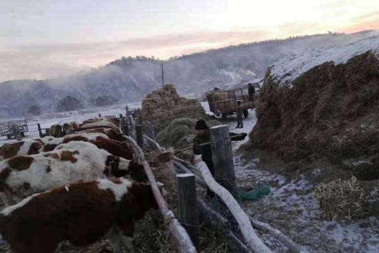 黑龍江經(jīng)濟(jì)網(wǎng)訊(殷傳武記者馬朝林)黑龍江大興安嶺的冬季有著聞名全國(guó)的個(gè)性,室外零下二三十度的嚴(yán)寒襯著漫山潔白的雪色,構(gòu)成北國(guó)最有代表性的名片。在這樣的冬景中走進(jìn)大興安嶺林業(yè)集團(tuán)公司韓家園林業(yè)局紅星林場(chǎng)職工黃松家的牛舍,感受到的卻是一種生活的勁頭與熱情。100多頭各色相間的牛分布在4個(gè)欄舍中,各角落不時(shí)傳來(lái)低沉的哞叫,黝黑明亮的牛眼和順的打量著外來(lái)的陌生人,空氣中混和著飼草的味道,升騰起一股強(qiáng)烈濃重的生活感。