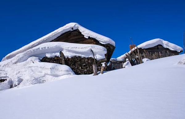 這里的降雪期長(zhǎng)達(dá)半年,每年累積降雪厚度達(dá)2米,獨(dú)特的小氣候造就了隨物賦形的雪檐,千姿百態(tài)的雪簾,變化多端的雪蘑菇,只有到了這里,才能領(lǐng)略到山舞銀蛇,原馳蠟象,欲與天公試比高的冰雪奇觀。積雪在風(fēng)力的作用下其狀好似奔馬、臥兔、神龜、巨蘑……千姿百態(tài),仿佛是天上的朵朵白云飄落。 雪村人在自家掛起大紅燈籠,潔白如玉的白雪在大紅燈籠的映襯下,溫柔喜慶,幻化無窮。