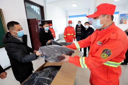 在森林消防大隊一樓活動室,司勇、張志良親切地與大隊干部職工交流談心,詳細了解森防隊員們的工作生活情況以及思想狀況,對他們“舍小家為大家”的敬業(yè)精神表示感謝,并逐一為隊員們分發(fā)了防寒羽絨服?!耙路笮『喜缓线m,穿在身上暖不暖和……”深切話語讓森防隊員們備感關懷,備受鼓舞,喜悅之情溢于言表。