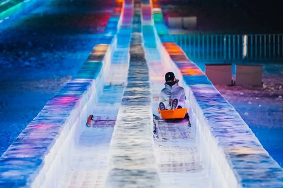 作為哈爾濱冰雪大世界最具人氣的游樂項目,今年的超級冰滑梯滑道長達(dá)423米,高低落差達(dá)21米,100米滑行速度快過蘇炳添創(chuàng)造的9秒83新亞洲紀(jì)錄,游客乘坐大滑梯時也能體驗一把飛人的感覺。