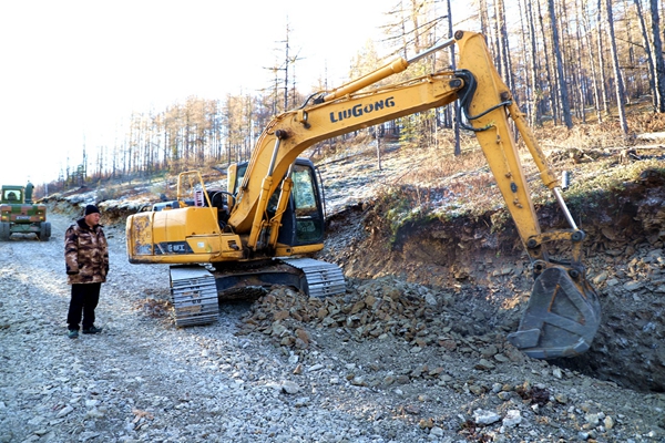 阿木爾林業(yè)局多種經(jīng)營公司職工新開通防火應(yīng)急路,打通防火道路最后一公里(王力 攝)