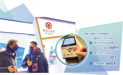 2017年起,人民銀行與商業(yè)銀行、互聯(lián)網(wǎng)公司等合作,共同進(jìn)行數(shù)字人民幣研發(fā)。2019年末,數(shù)字人民幣開始試點(diǎn),目前,人民銀行已經(jīng)在深圳、蘇州、雄安、成都、上海、海南、長沙、西安、青島、大連等地和2022年北京冬奧會場景開展數(shù)字人民幣試點(diǎn)。中國人民銀行公布的數(shù)據(jù)顯示,截至2021年10月8日,數(shù)字人民幣試點(diǎn)場景已超過350萬個,累計開立個人錢包1.23億個,交易金額約560億元。