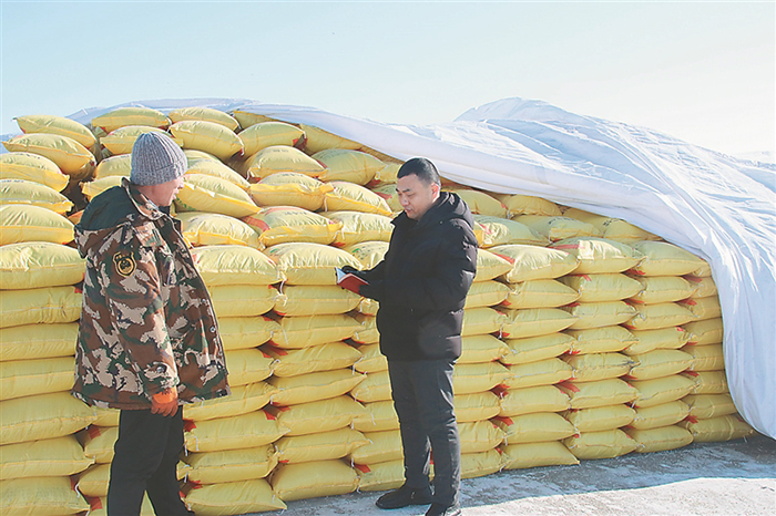 日前,在北大荒集團(tuán)趙光農(nóng)場有限公司第六管理區(qū)曬場上,幾個(gè)人正在對(duì)碼放整齊的化肥進(jìn)行盤點(diǎn),其中一個(gè)人認(rèn)真地做著記錄,他就是農(nóng)場第六管理區(qū)種植戶劉明亮。
