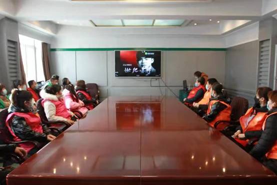 組織志愿者們共同觀看《世紀(jì)雷鋒》專題教育片(趙明攝)