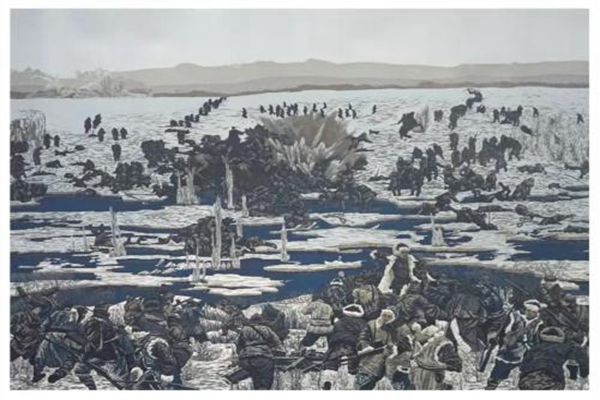 版畫作品《冰趟子戰(zhàn)役中的趙尚志》