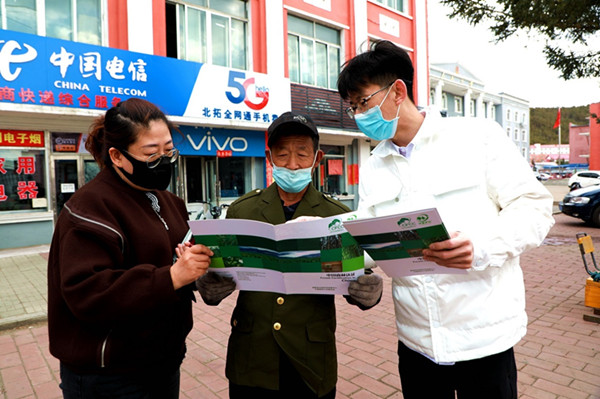 阿木爾林業(yè)局工作人員零距離向職工群眾解答森林認證概念、流程、目的等相關(guān)問題(王力 攝)