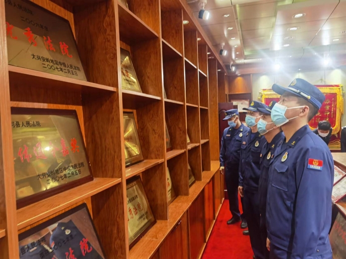 活動中,法院講解人員首先向消防救援指戰(zhàn)員介紹了塔河縣人民法院黨史教育和公檢法司系統(tǒng)內(nèi)部教育整頓開展情況。隨后引導指戰(zhàn)員參觀了審判、辦公和文化三個區(qū)域;在審判區(qū),對案件的審理流程進行了詳細的說明;在辦公區(qū),介紹了法院的工作程序和司法人員的服務內(nèi)容;在文化作品展區(qū),向全體指戰(zhàn)員展示了法院文化建設工作的主要成果。活動中,法院講解人員結(jié)合近年來犯罪案件受理情況,向全體指戰(zhàn)員普及安全保護知識,使之了解公民基本的財產(chǎn)權(quán)和身份權(quán)的概念,懂得保護自身權(quán)利的途徑與方法。