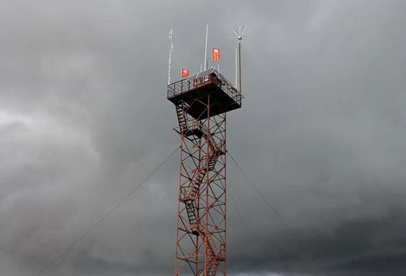 安裝在呼中林業(yè)局施業(yè)區(qū)內(nèi)瞭望塔頂?shù)膯误w拒雷設備(徐志偉攝)