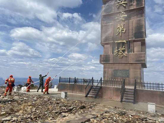 據相關負責人介紹,“興安第一塔”因所處位置大興安嶺最高峰而得名,這里常年缺少水源,瞭望員日常生活用水需要從幾公里外的地方人工背運,今天用水噴淋“興安第一塔”尚屬首次。