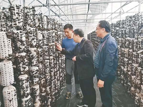科研人員對黑木耳規(guī)?;a(chǎn)進行技術(shù)指導。
