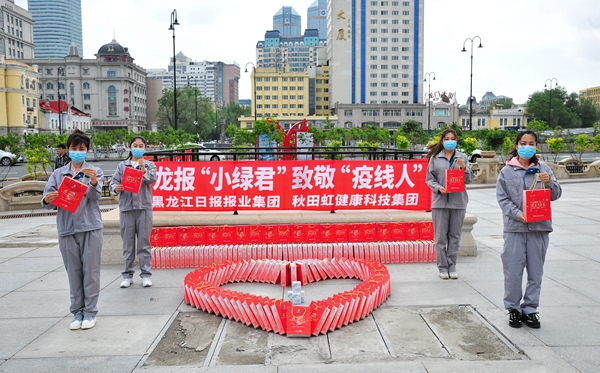為弘揚(yáng)偉大的抗疫精神,凝聚社會(huì)各界的正能量,展現(xiàn)主流新聞媒體和愛(ài)心企業(yè)對(duì)“疫線人”的關(guān)愛(ài)之情,黑龍江日?qǐng)?bào)報(bào)業(yè)集團(tuán)和哈爾濱秋田虹健康科技集團(tuán)共同發(fā)起此次主題公益活動(dòng)?;顒?dòng)將持續(xù)2個(gè)月時(shí)間,走訪、看望、慰問(wèn)這些一心為民的抗疫英雄,以及省重點(diǎn)項(xiàng)目建設(shè)者,今年受到國(guó)家表彰的全國(guó)五一勞動(dòng)獎(jiǎng)狀、全國(guó)工人先鋒號(hào)團(tuán)隊(duì)等8個(gè)單位、800余人,送去具有提高免疫力功能的高品質(zhì)滅活乳酸菌固體飲料“小綠君”產(chǎn)品,總價(jià)值近百萬(wàn)元。公益活動(dòng)將通過(guò)《黑龍江日?qǐng)?bào)》、龍頭新聞客戶端、黑龍江日?qǐng)?bào)微信公眾號(hào)、黑龍江經(jīng)濟(jì)網(wǎng)、抖音號(hào)等進(jìn)行報(bào)道。