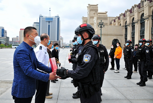 向巡特警代表捐贈(zèng)愛(ài)心慰問(wèn)品