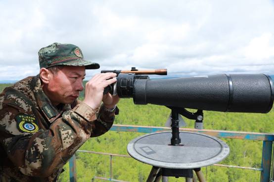 阿木爾林業(yè)局紅旗林場“阿08”瞭望塔瞭望員鄭巖住進了增加保溫層的塔室,激發(fā)了工作熱情,正在密切瞭望,做到有火早發(fā)現(xiàn)、早報告(王力 攝)