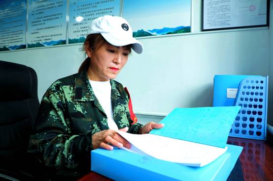 阿木爾林業(yè)局長山林場1—0—1—2線管護站有水有電有手機信號,管護員趙娣在干凈舒適的工作環(huán)境整理防火內(nèi)業(yè)(王力 攝)