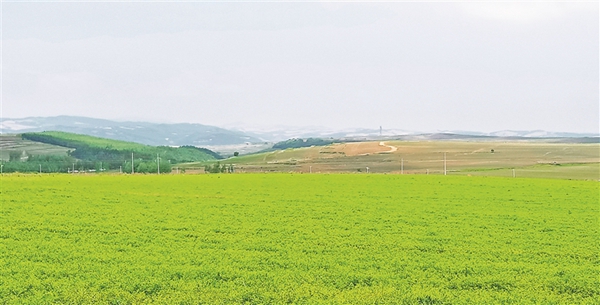 沿著公路,中藥材種植基地呈現(xiàn)一片花海:大片芍藥已經(jīng)開花,白的粉的隨風飄搖;千畝黃芩都已經(jīng)3歲,仿佛綠蘿緞一直蔓延到遠方的山坡;萬畝沙棘谷,更像一幅水墨畫,剛露頭的沙棘果盡顯萌態(tài);樹下間作的蒲公英盛開著黃色的小花;紫的泛黑的藍靛果吸引一群群鳥兒不停來啄食……