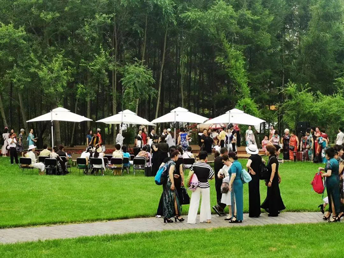 在文化創(chuàng)意園的核心位置,有一處面積為131.14平方米的半月?tīng)钌治枧_(tái)。4000株大海棠花從2米高的創(chuàng)意作品啤酒筒潑灑而出,蜿蜒“流淌”。此景名為《森林飛花》,與森林舞臺(tái)交相呼應(yīng),相得益彰。