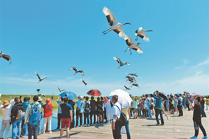 除了打冰球、吃烤肉,每支參賽球隊都會不約而同地去扎龍自然保護區(qū)賞鶴,同時奧悅水世界、龍沙動植物園、鶴城公園等旅游景點的游客接待量也激增。小冰球,讓鶴城旅游變得火熱。
