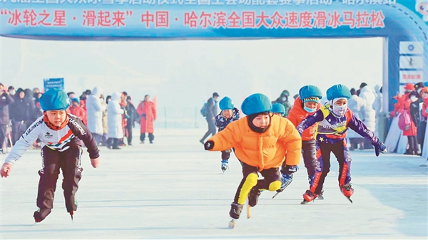 本報訊(記者楊鐳)4日,由國家體育總局冬季運動管理中心、中國滑冰協(xié)會、省體育局、哈爾濱市體育局、哈爾濱市松北區(qū)政府主辦,哈爾濱市滑冰協(xié)會承辦的“冰輪之星·滑起來”中國·哈爾濱全國速度滑冰馬拉松賽,在位于哈爾濱大劇院附近松花江上的公益冰場舉行。全國各地超過1000名滑友前來參賽。
