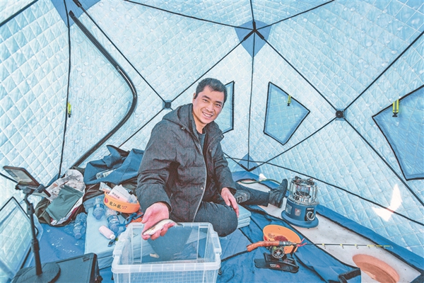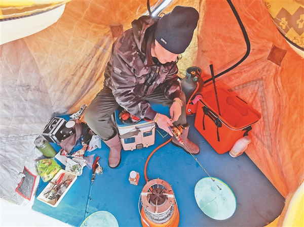 比賽現(xiàn)場,冰面上色彩各異的帳篷錯落排開,來自我省東部地區(qū)多個地市的70名釣魚愛好者聚集在此,感受垂釣魅力。當日室外最低溫度零下20℃,而冰釣帳篷內卻是熱氣騰騰。選手們用小火爐取暖,調料、打窩,各展技藝,不一會兒都收獲頗豐。