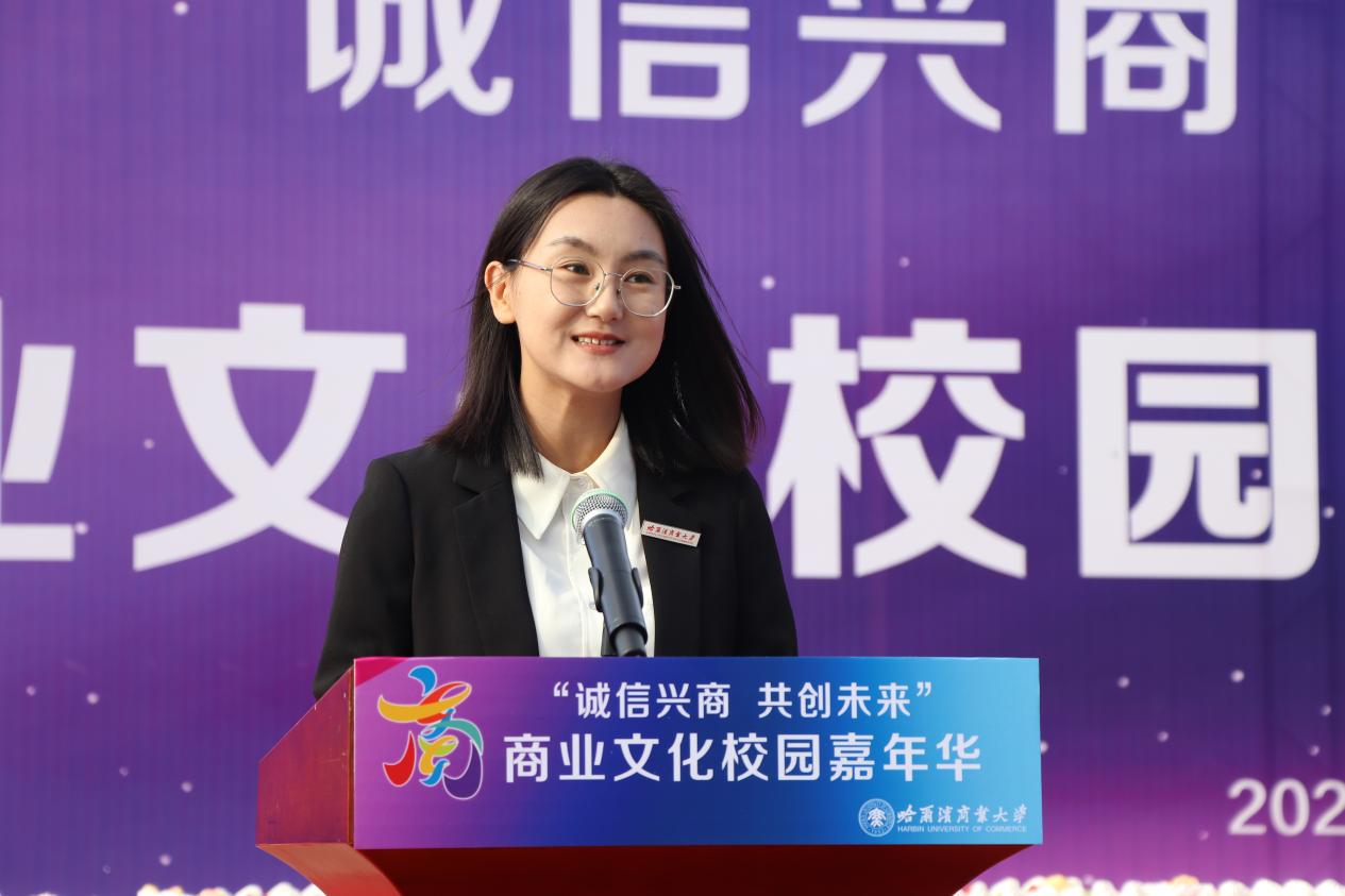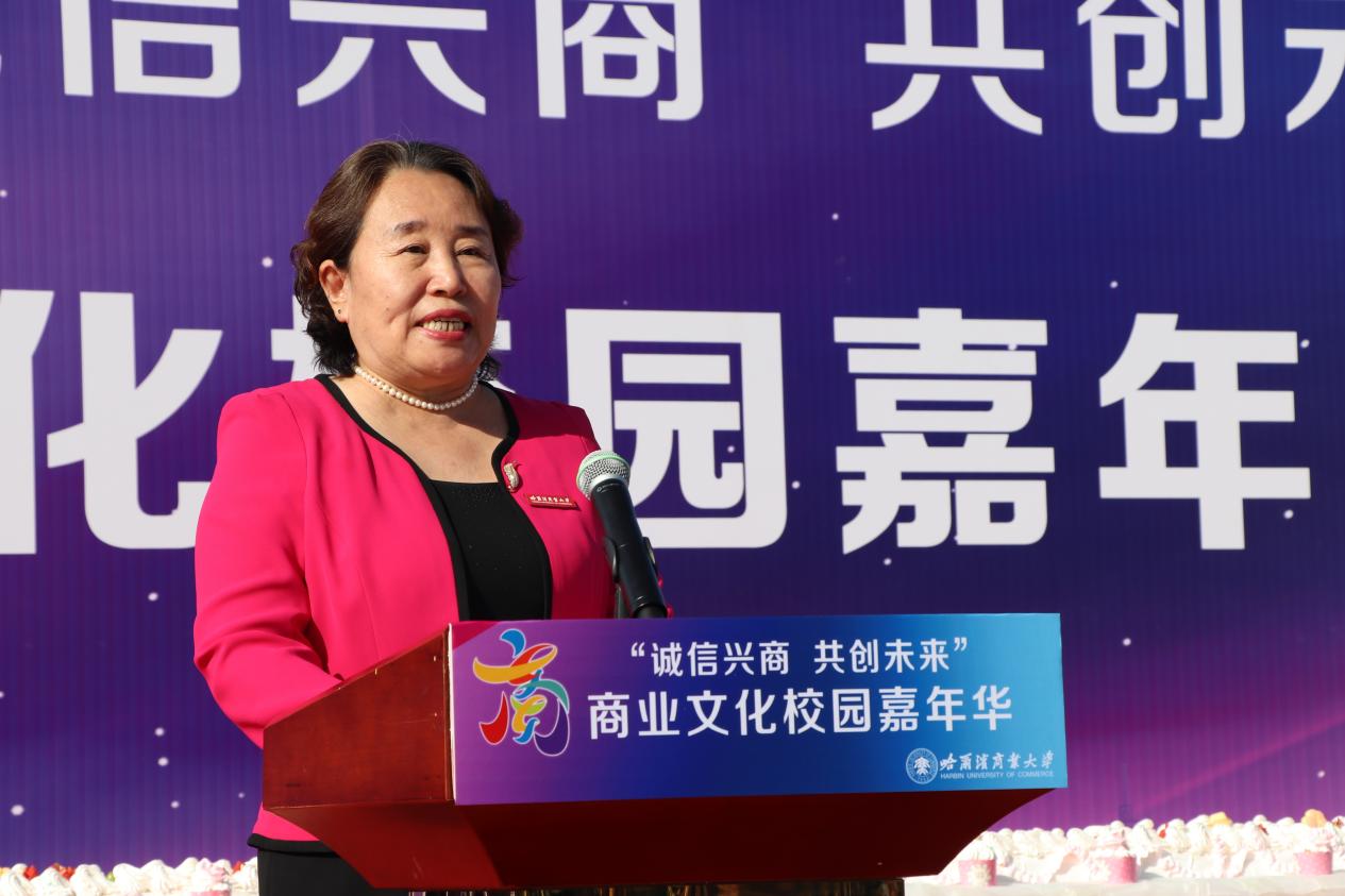 哈爾濱商業(yè)大學黨委書記孫先民致辭。他表示,誠信“軟實力”為高質(zhì)量發(fā)展提供“硬支撐”。本屆“誠信興商·共創(chuàng)未來”商業(yè)文化校園嘉年華活動堅持以文化力量啟智潤心、固本培元,是深入學習貫徹習近平總書記在主持召開新時代推動東北全面振興座談會和視察我省時的重要講話重要指示精神,全面落實立德樹人根本任務(wù)的務(wù)實舉措。哈爾濱商業(yè)大學作為新中國第一所多科性商業(yè)大學,始終堅持“大商鑄才、大雅育人、商雅兼?zhèn)洹⒔?jīng)世濟民”的育人理念,厚植師生“心懷祖國,至誠奉獻,以商弘業(yè),矢志一流”的大商之道?;顒訉⒊浞职l(fā)揮老字號在文化引領(lǐng)、品牌建設(shè)、產(chǎn)業(yè)升級等方面的示范引領(lǐng)作用,彰顯龍江市場主體活力與創(chuàng)新力,聚焦建設(shè)“六個龍江”、推進“八個振興”,筑牢堅定龍江文化繁榮發(fā)展的自信根基,進一步凝聚師生扎根龍江、服務(wù)龍江、建設(shè)龍江的情懷和力量。