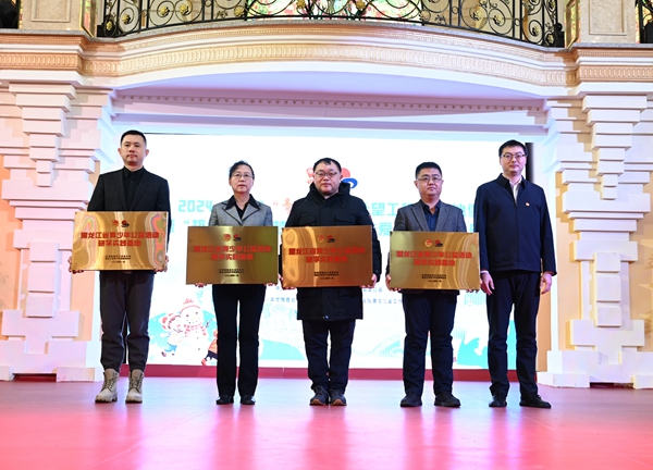 “我們?cè)诜鼱柤忧f園祝大家新春快樂,龍年大吉!”開營儀式上,領(lǐng)導(dǎo)嘉賓為40名雙鴨山“小黃鴨”發(fā)放由聯(lián)想(北京)有限公司、黑龍江飛鶴乳業(yè)有限公司、黑龍江省明悅網(wǎng)絡(luò)科技有限公司捐贈(zèng)的科技禮包、暖冬禮包、新春禮包。這份用愛填滿的禮物是對(duì)孩子們的祝福和對(duì)未來的美好期許,希望孩子們能夠度過一個(gè)愉快、祥和的新春佳節(jié)。哈爾濱學(xué)生代表與雙鴨山“小黃鴨”互換親手制作的手工藝品和精心準(zhǔn)備的禮物,手牽手、心連心,這正是希望與愛手拉手研學(xué)項(xiàng)目的意義,結(jié)下的是孩子們的深厚情誼,鏈接的是希望與愛。