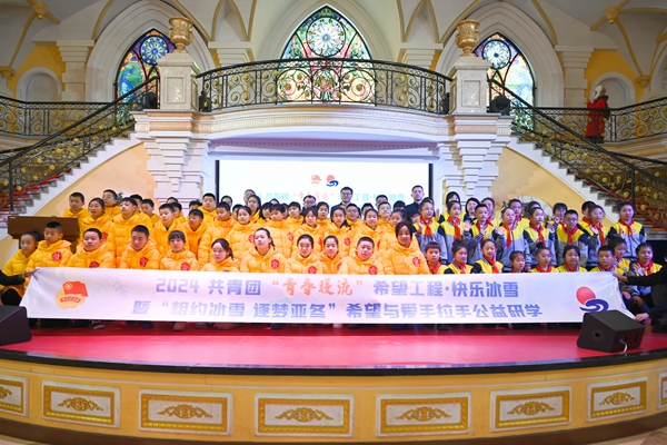 黑龍江經(jīng)濟(jì)網(wǎng)訊(于佳弘 記者祝東)1月15日,2024共青團(tuán)“青春暖流”希望工程·快樂冰雪暨“相約冰雪 逐夢亞冬”希望與愛手拉手公益研學(xué)正式開營?;顒?dòng)由中國青少年發(fā)展基金會(huì)、共青團(tuán)黑龍江省委員會(huì)指導(dǎo),黑龍江省青少年發(fā)展基金會(huì)、黑龍江省學(xué)生聯(lián)合會(huì)、少先隊(duì)黑龍江省工作委員會(huì)主辦,并得到了哈爾濱工程大學(xué)、哈爾濱工業(yè)大學(xué)教育發(fā)展基金會(huì)、黑龍江飛鶴乳業(yè)有限公司、哈爾濱伏爾加莊園文化旅游有限公司、哈爾濱市太陽島風(fēng)景區(qū)資產(chǎn)有限公司、黑龍江龍塔國際旅游有限公司、聯(lián)想(北京)有限公司、黑龍江省明悅網(wǎng)絡(luò)科技有限公司的大力支持。共青團(tuán)黑龍江省委副書記代東力,黑龍江省飛鶴慈善基金會(huì)秘書長蘭天偉,哈爾濱工程大學(xué)團(tuán)委書記、本科生院黨委書記郝琛,共青團(tuán)雙鴨山市委書記薛麗偉,黑龍江省青少年發(fā)展基金會(huì)理事長杜晶等領(lǐng)導(dǎo)嘉賓出席活動(dòng),雙鴨山“小黃鴨”與帶隊(duì)教師、公安干警、龍江小記者、哈爾濱學(xué)生代表共計(jì)百余人參加活動(dòng)。