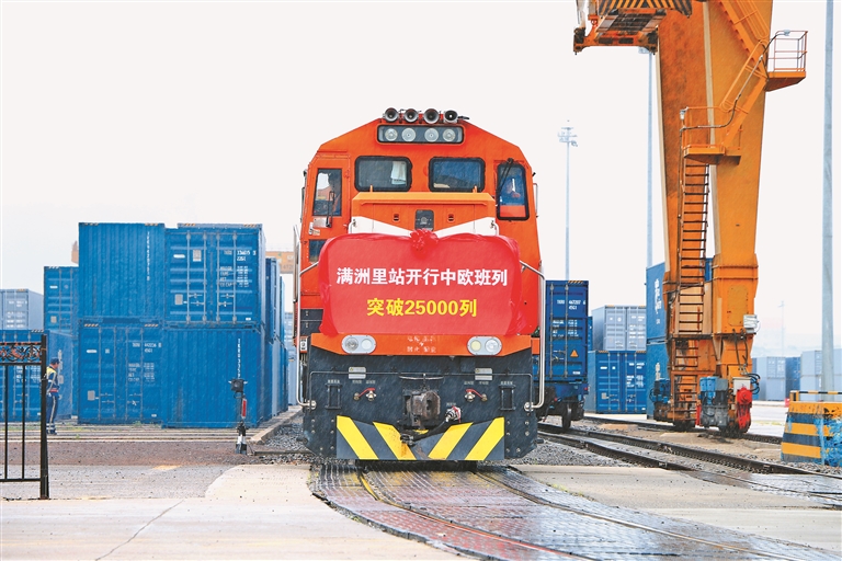 滿洲里鐵路口岸通行中歐班列突破25000列
