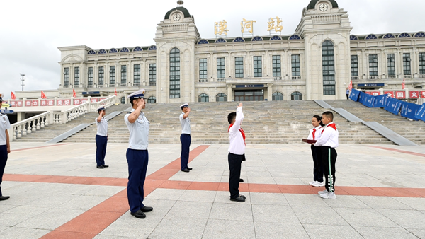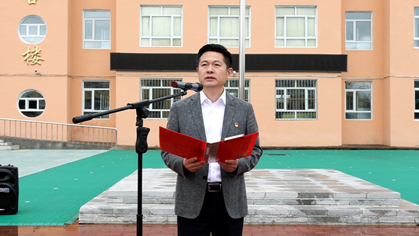 在國旗下,漠河市邊境檢查站代表陳澤和“全區(qū)十佳駐村干部”王成龍用自己生動的故事為在場的每位少先隊(duì)員們上了一堂生動的國防教育課,漠河市的少先隊(duì)員代表王涵在國旗下表達(dá)了對祖國的熱愛和對戍邊工作者們的敬佩。團(tuán)省委副書記陳海萍在講話中鼓勵少先隊(duì)員要學(xué)習(xí)漠河戍邊工作者們的堅(jiān)韌不拔和無私奉獻(xiàn),要立足祖國最北方志存高遠(yuǎn)、勤奮學(xué)習(xí)、錘煉品德、強(qiáng)健體魄,敢于創(chuàng)新、富于創(chuàng)意、樂于創(chuàng)造,要沿著“入隊(duì)、入團(tuán)、入黨”的“人生三部曲”奮力前進(jìn),為推進(jìn)中國式現(xiàn)代化、實(shí)現(xiàn)強(qiáng)國復(fù)興偉業(yè)貢獻(xiàn)青春力量。