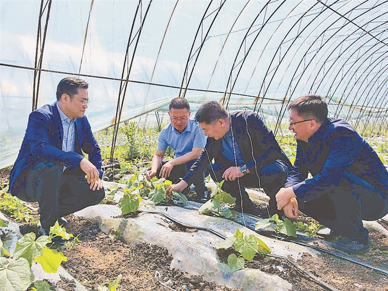 專(zhuān)家們幫助農(nóng)戶解決作物生長(zhǎng)問(wèn)題。本報(bào)資料片