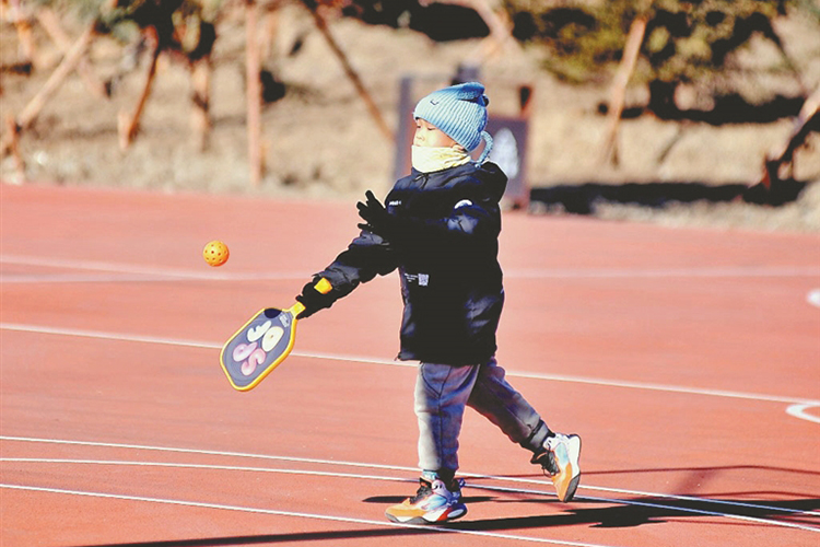 孩子在公園內(nèi)打球。本報(bào)記者 蘇強(qiáng)攝