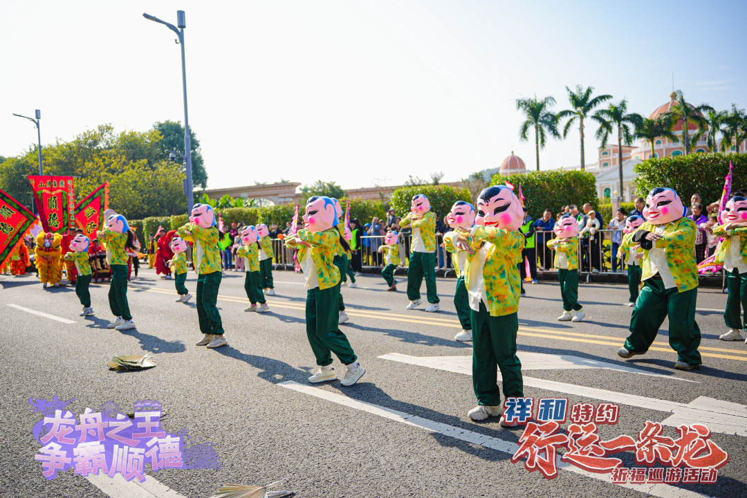 解鎖龍文化,體驗(yàn)新玩法;打造新民俗,巡游好歡樂?!靶羞\(yùn)一條龍”祈福巡游活動是順德全新打造的龍舟文化新民俗,現(xiàn)已成功舉辦兩屆。巡游以“拜龍母”“龍眼點(diǎn)睛”等民俗儀式為核心,凝練“行龍運(yùn),接龍福”的寓意,讓市民游客近距離感受民俗活動的獨(dú)特魅力。
