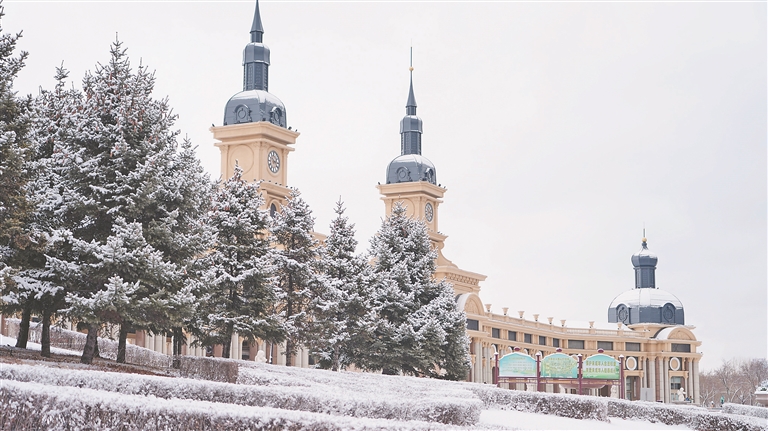 經(jīng)過一夜的降雪,27日,哈爾濱市的街頭、樹木、房頂、車頂都積了厚厚一層雪,整座城市變成了一個(gè)白色的童話世界。