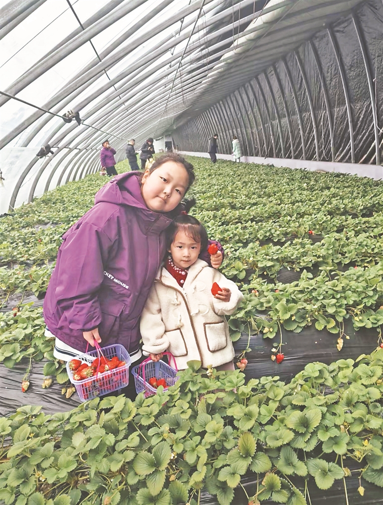 據(jù)園區(qū)負(fù)責(zé)人張立元介紹,2月份以來,日均接待游客超過100人次,周末時(shí)人數(shù)成倍增長(zhǎng)。大棚內(nèi),草莓占地5畝,通過自主育苗、全程采用無公害種植技術(shù)等方式,產(chǎn)量和質(zhì)量實(shí)現(xiàn)雙提升,年產(chǎn)量約6000斤。