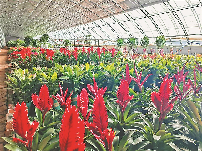 紅城村花卉大棚的盆栽種出“好錢景”。圖片由寧安市委宣傳部提供