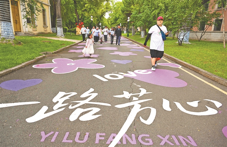 近日,哈爾濱市太陽島景區(qū)臨江街上新增添的彩繪“一路芳心”景觀成為新的網紅打卡地,多彩的“愛心”和花朵交匯組成,猶如太陽島上的“莫奈花園”,吸引大批市民和游客們相約太陽島,愛上哈爾濱。